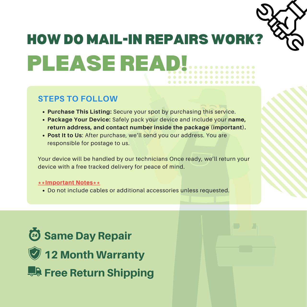 We offer a 12 month warranty on all repairs carried out at OG Repairs.